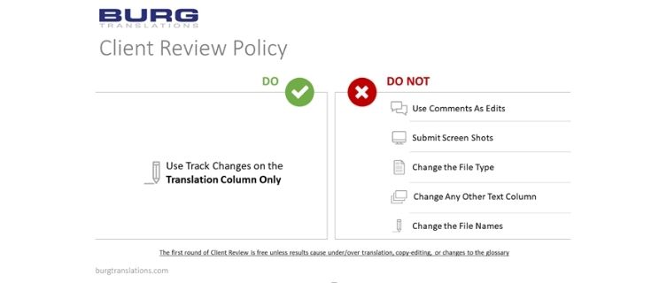 Since BURG Translations is ultimately responsible for high-quality deliverables, BURG-certified professional translators will review the changes to ensure: