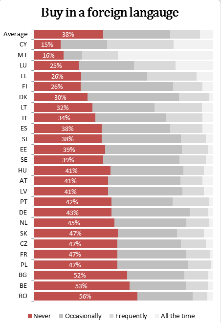 At the product level, perceived benefits include translation of the product itself, for example a website, and related user experience components such as buttons, measurements, warning labels, etc. because it would expose the product to a much larger audience. For example, 18% in China, or 259 million people, buy online at Chinese websites only. In Japan, 24%, or about 43 million people, only buy from Japanese websites. To cost-effectively increase market share, the translation of product material should be a priority.